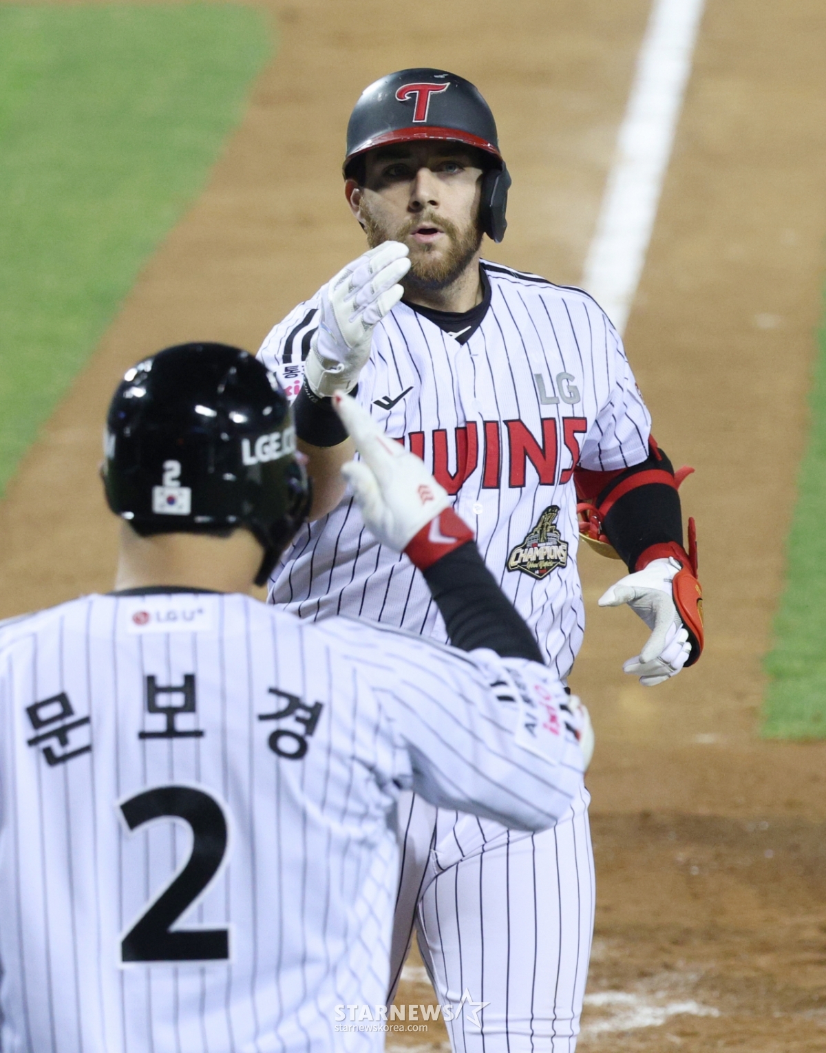 LG Austin hits a one-run home run against Lotte Park Jung-min in the bottom of the eighth inning with no outs.