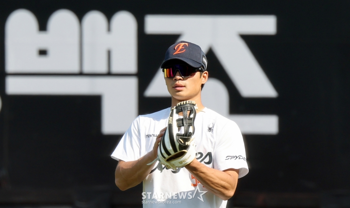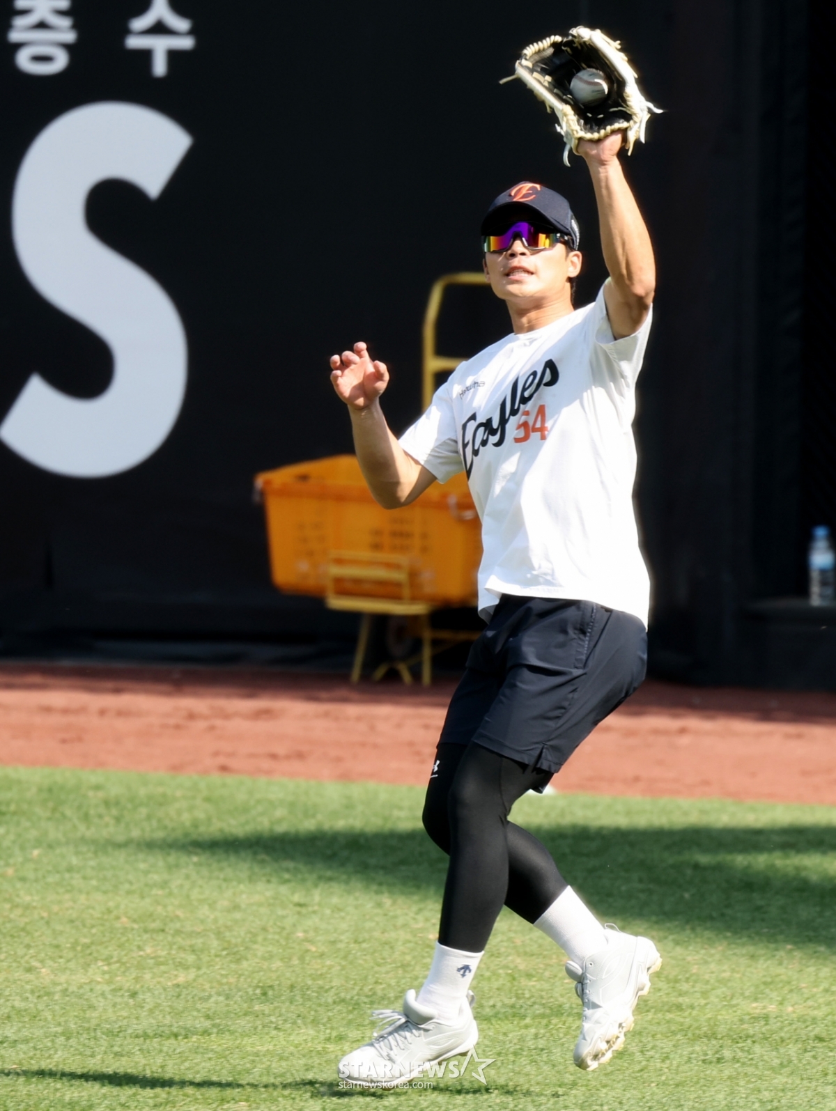Hanwha outfielder Oh Jae-won is training for outfielder ahead of the 2026 KBO League Hanwha Eagles and Samsung Lions game at Hanwha Life Ball Park in Daejeon on the 15th. 2026.04.15.