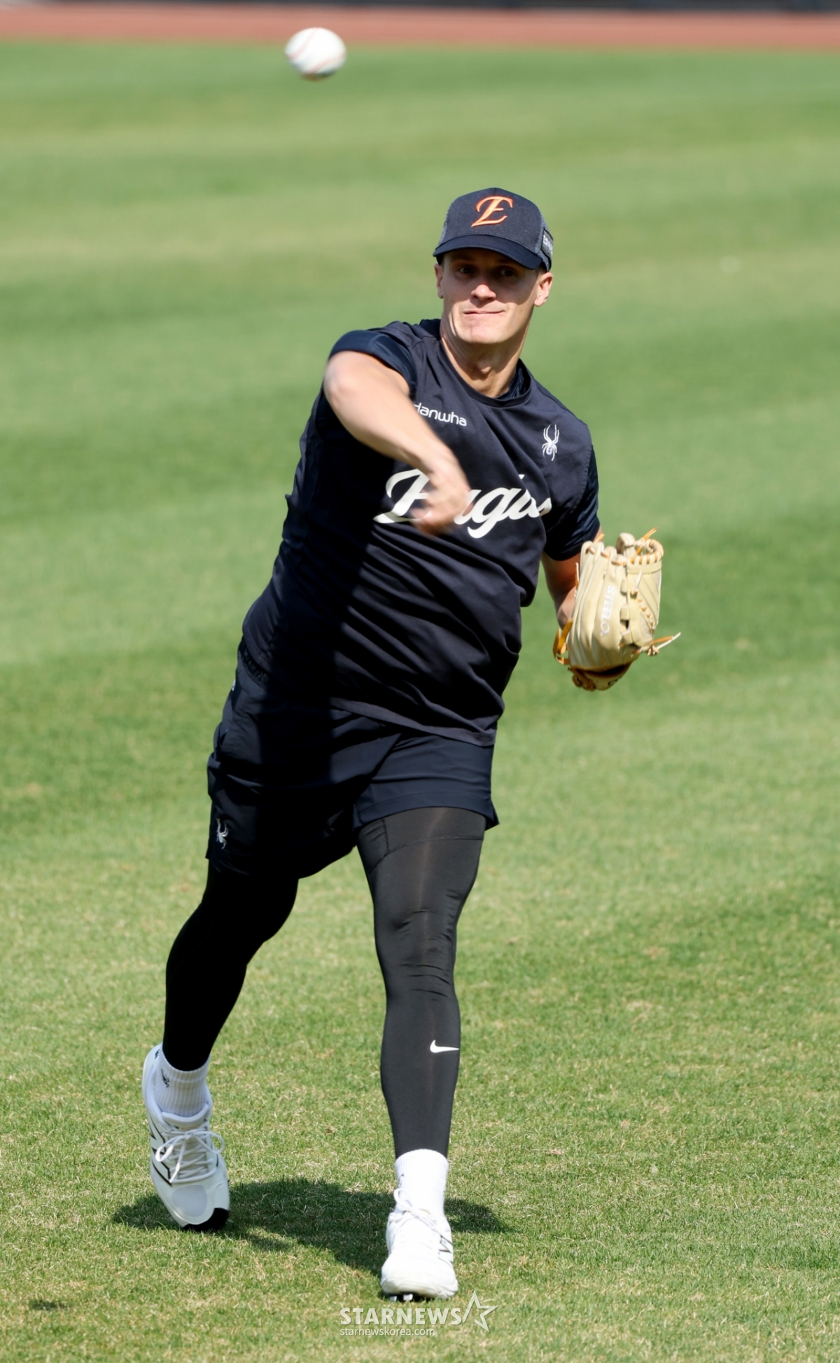 Hanwha Jack Cushing is pitching ahead of the 2026 KBO League Hanwha Eagles and Samsung Lions match at Hanwha Life Ball Park in Daejeon on the 15th. Manager Kim Kyung-moon handed over the poor Kim Seo-hyun's finishing position to Jack Cushing. 2026.04.15.
