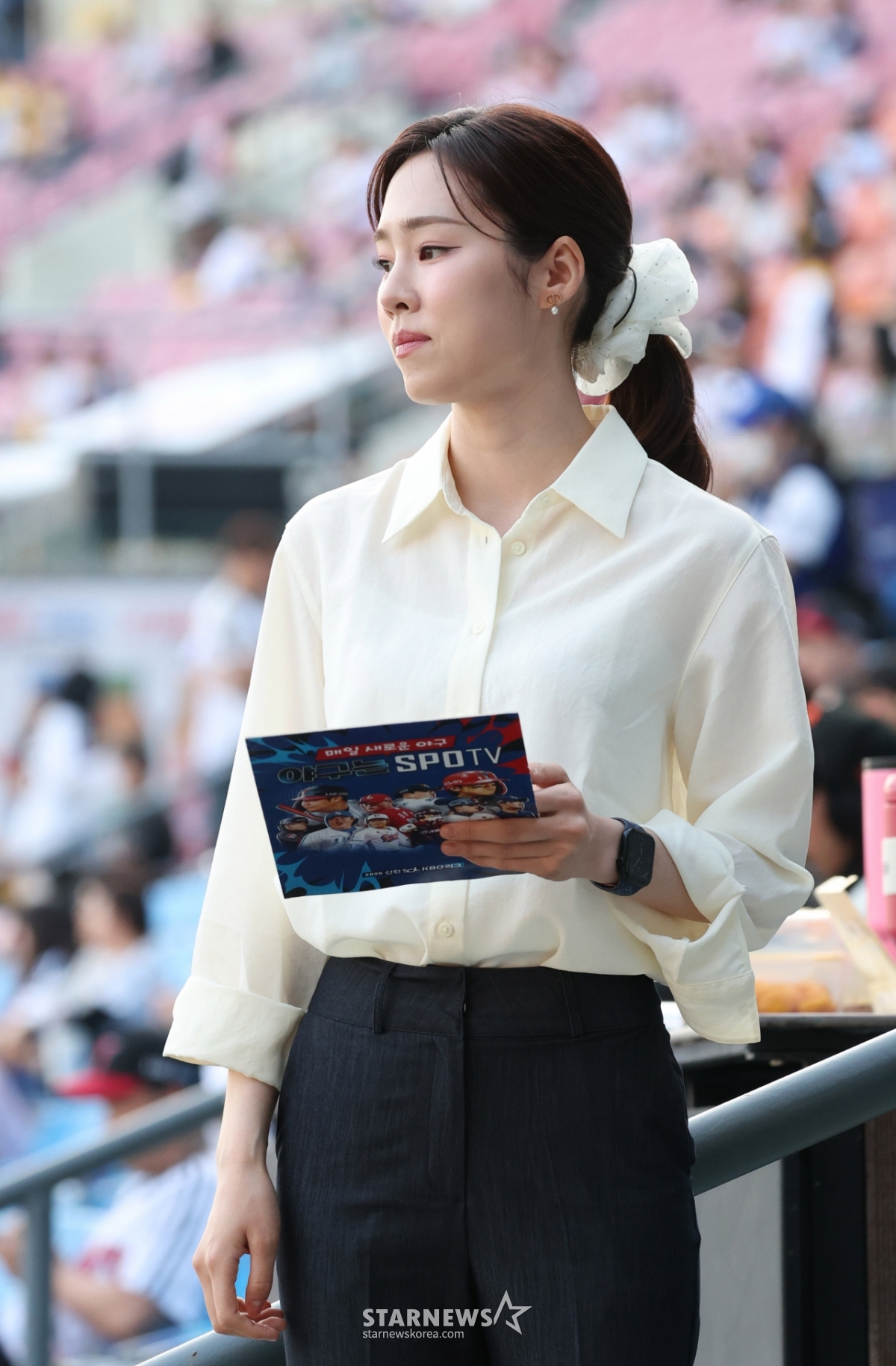 Announcer Noh Yoon-joo is preparing for the broadcast.