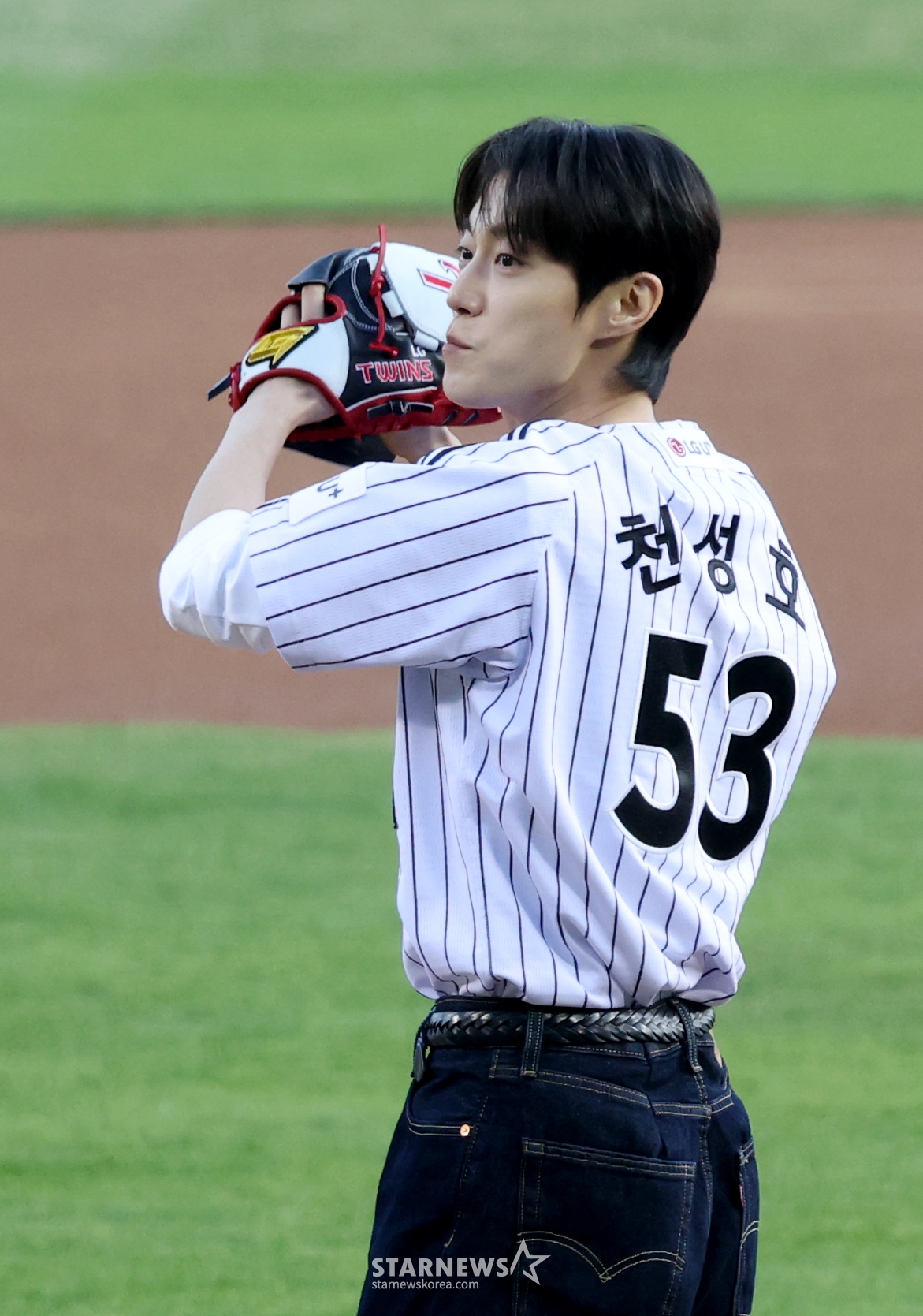 Actor and HIGHLIGHT member Yoon Doo-joon is pitching for LG's victory.