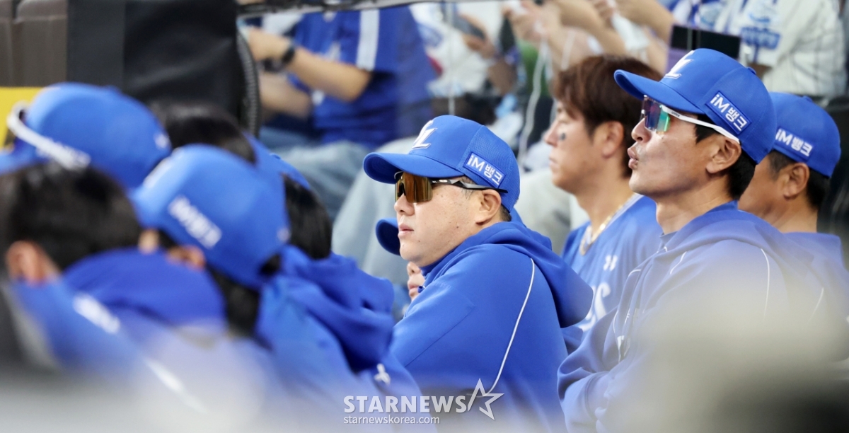 Samsung manager Park Jin-man is watching the attack in the top of the first inning of the 2026 KBO League Hanwha Eagles and Samsung Lions game at Hanwha Life Ball Park in Daejeon on the 15th.. 2026.04.15.
