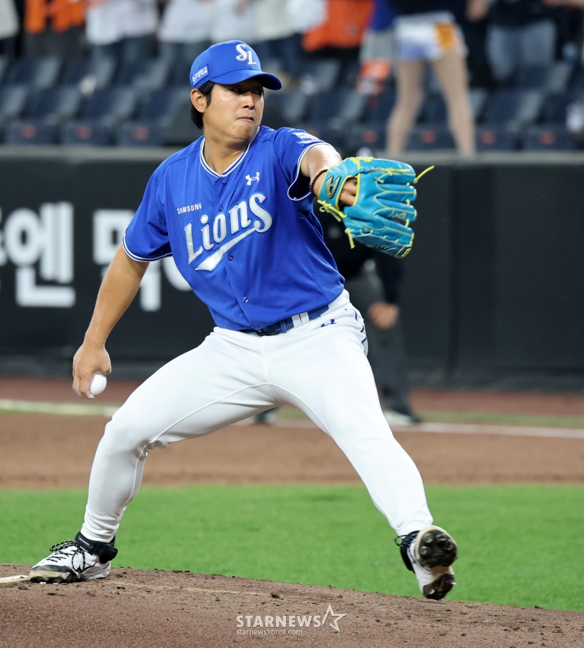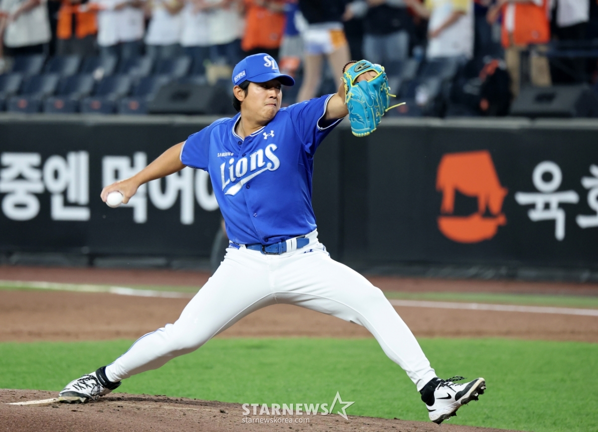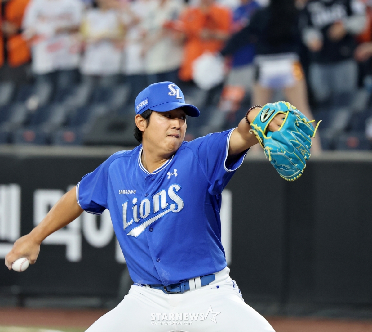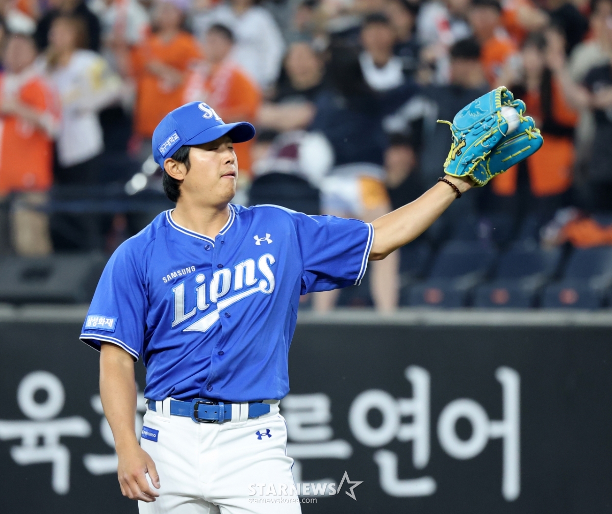 Samsung starter Yang Chang-seop was substituted with two outs after allowing three runs in the bottom of the second inning of the 2026 KBO League Hanwha Eagles and Samsung Lions at Hanwha Life Ball Park in Daejeon on the 15th. Hanwha starter Hernandez was forced to leave the mound after allowing seven runs in the top of the first inning. 2026.04.15.