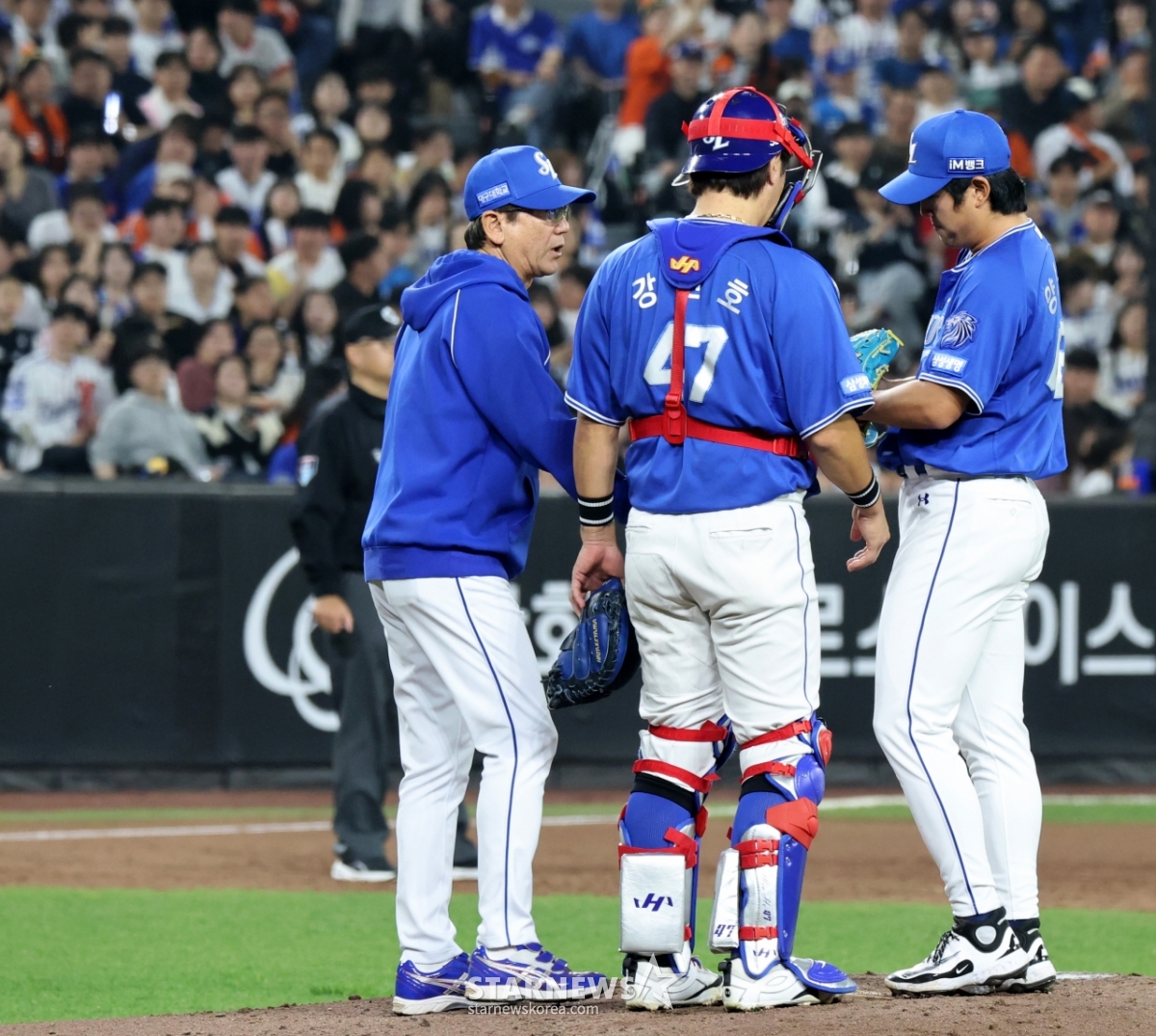 Yang Chang-seop is taking the mound with two outs in the bottom of the second inning of the 2026 KBO League Hanwha Eagles and Samsung Lions game at Hanwha Life Ball Park in Daejeon on the 15th. 2026.04.15.