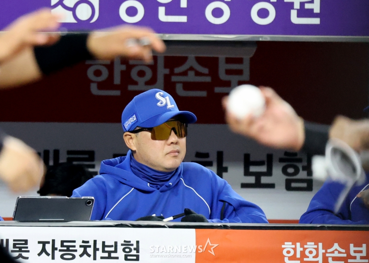 Samsung manager Park Jin-man calmly stares at the ground in the 2026 KBO League Hanwha Eagles and Samsung Lions match at Hanwha Life Ball Park in Daejeon on the 5th. 2026.04.15.