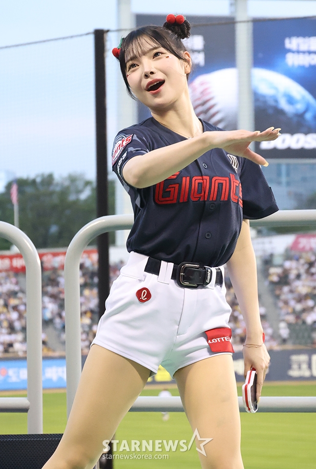Lotte cheerleader Lee Ha-eun is delivering a refreshing cheer.