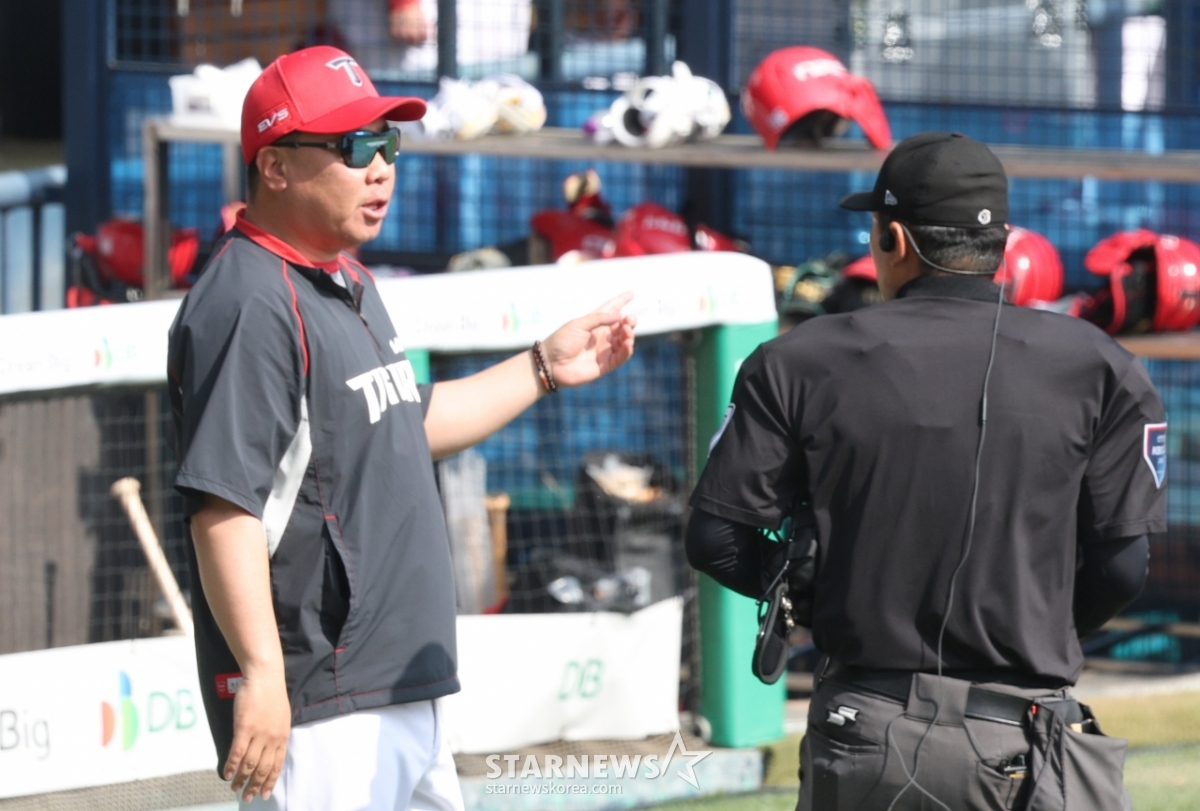 KIA manager Lee Beom-ho requested a video review of Park Jun-soon's hit after Park Chan-ho's run in the bottom of the fifth inning was overturned following a video review.