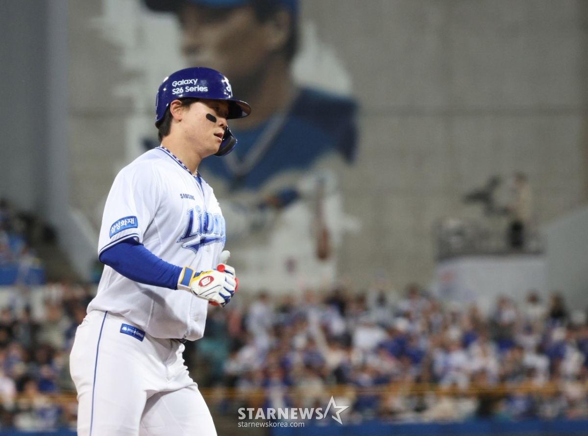 Samsung's Park Seung-kyu hit a go-ahead, one-run home run to left field in the bottom of the third inning with no outs and is rounding the bases.