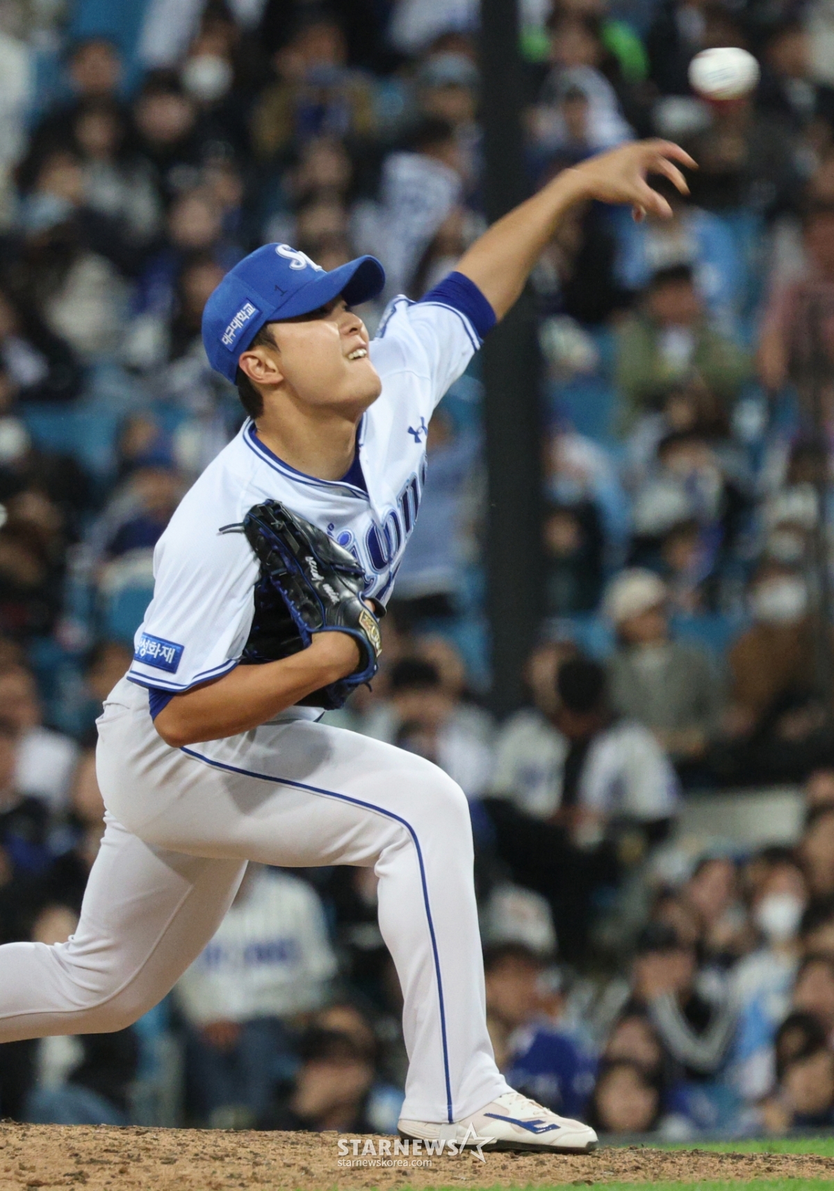 Samsung's Lee Seung-min is pitching.