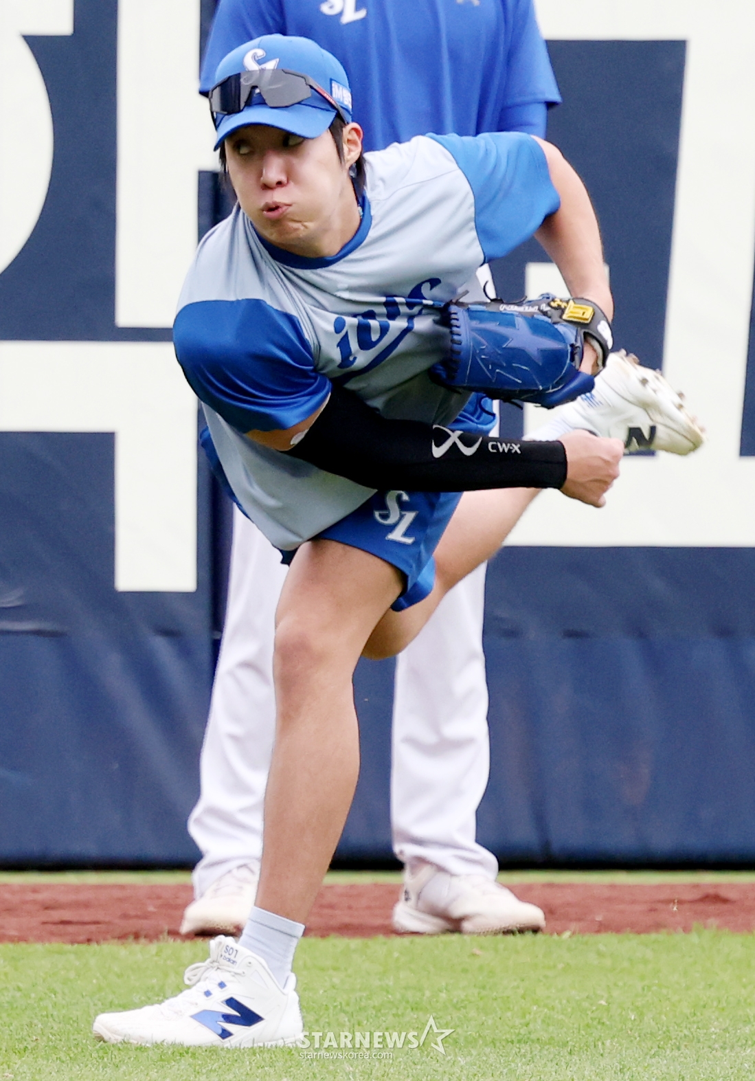 Samsung's Won Tae-in is conducting pitching training in the outfield.