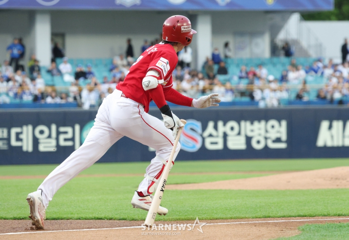 SSG's Park Seong-han hit a double to right-center field with no outs in the top of the first inning against Samsung's starter Haru, achieving a new record of 20 consecutive games with a hit.