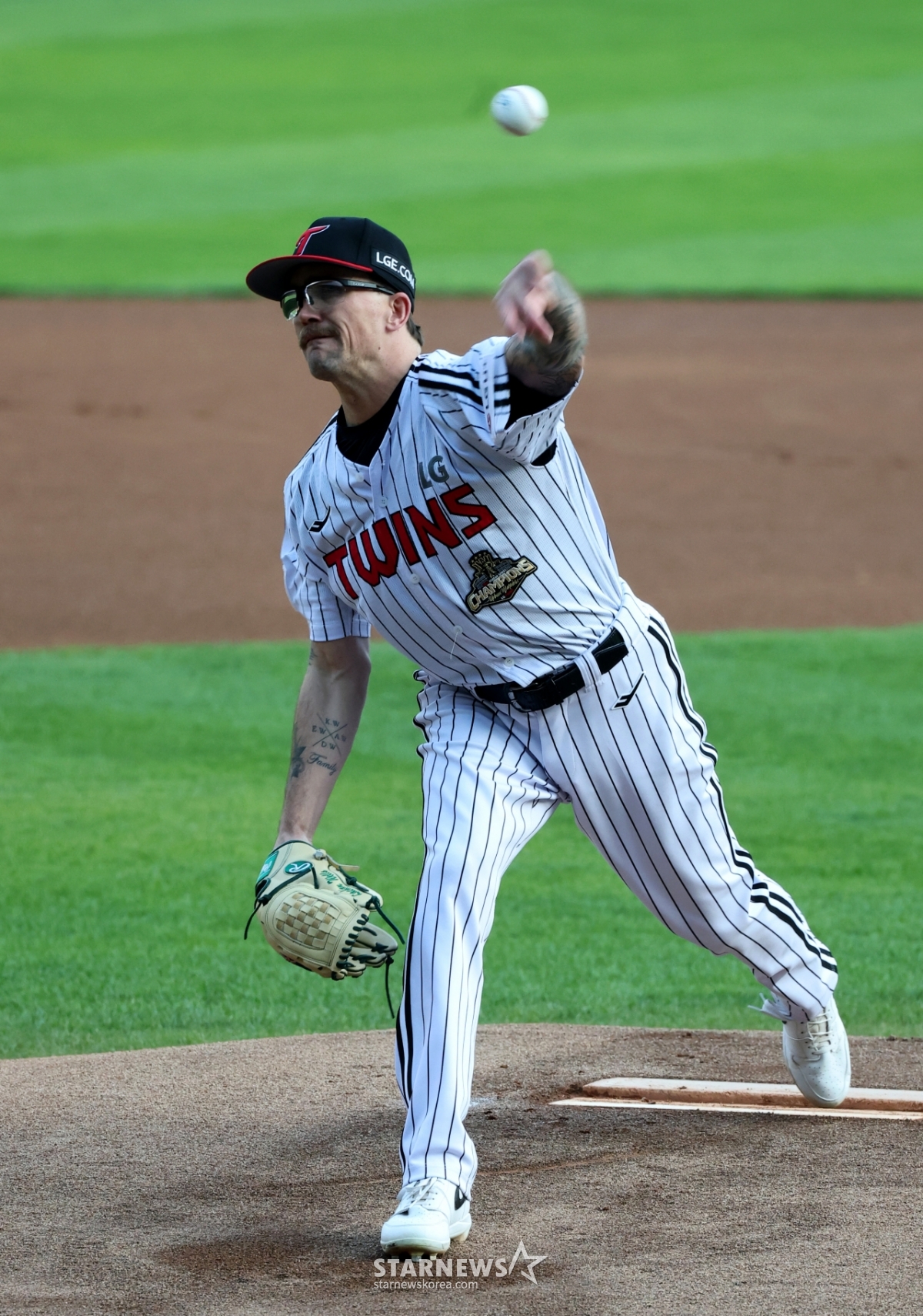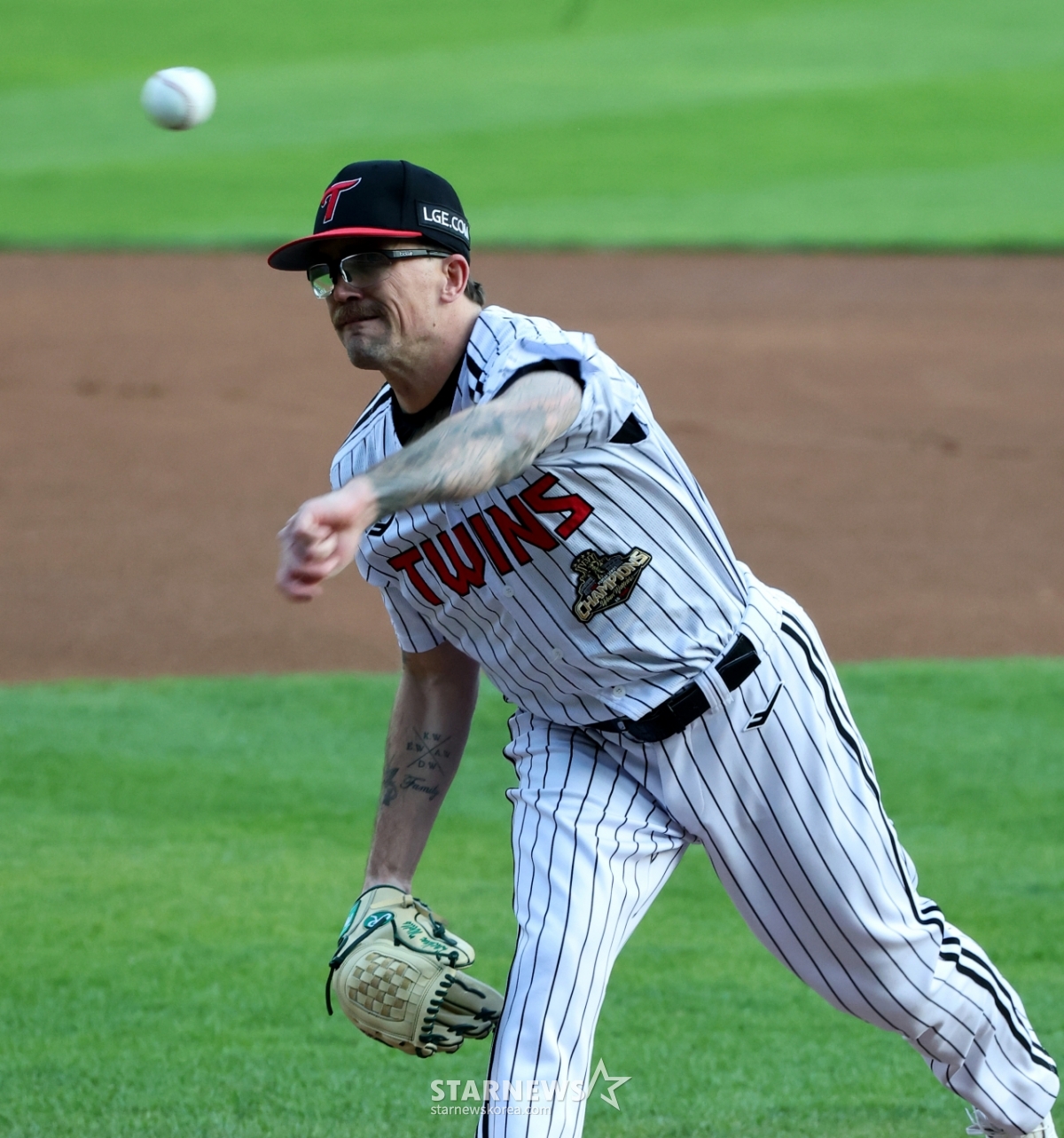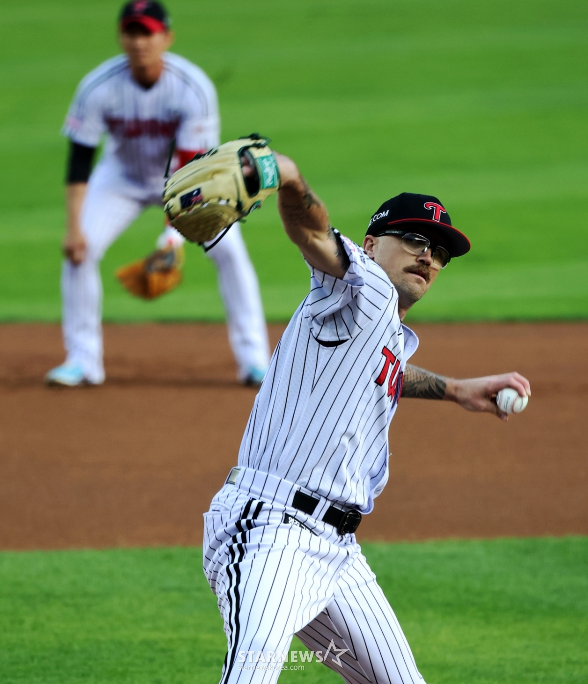LG left-hander Wells is starting and pitching brilliantly in the 2026 KBO League match between LG Twins and Hanwha Eagles at Jamsil Baseball Stadium on the 22nd.