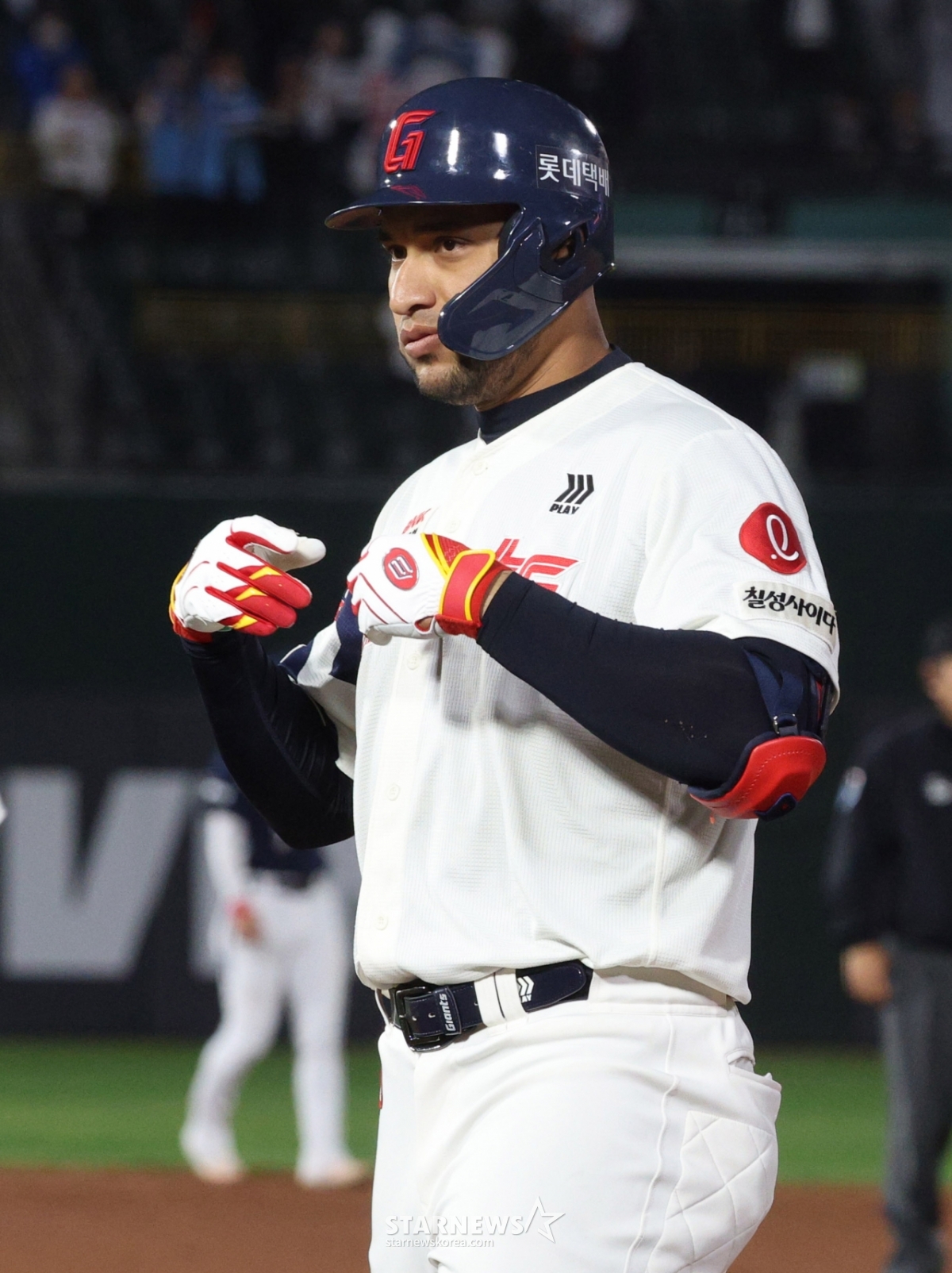 Lotte's Rayes hit a two-out, two-run single in the bottom of the fourth inning, drove in one run, reached base, and then performed a ceremony.
