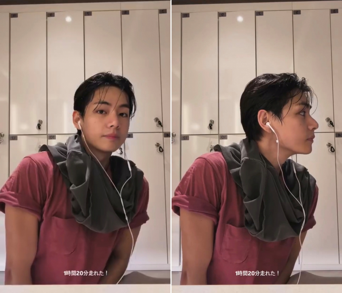 V posted a video of him running on Instagram on February 1, followed by a short video showing him running for an hour and 20 minutes. V, in the video, was taking a short break in the locker room after finishing his workout.