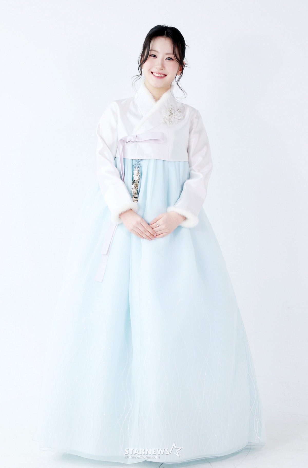 Singer Oh Yu-jin poses before the New Year's hanbok interview held at Star News headquarters in Jung-gu, Seoul. /2026.02.17