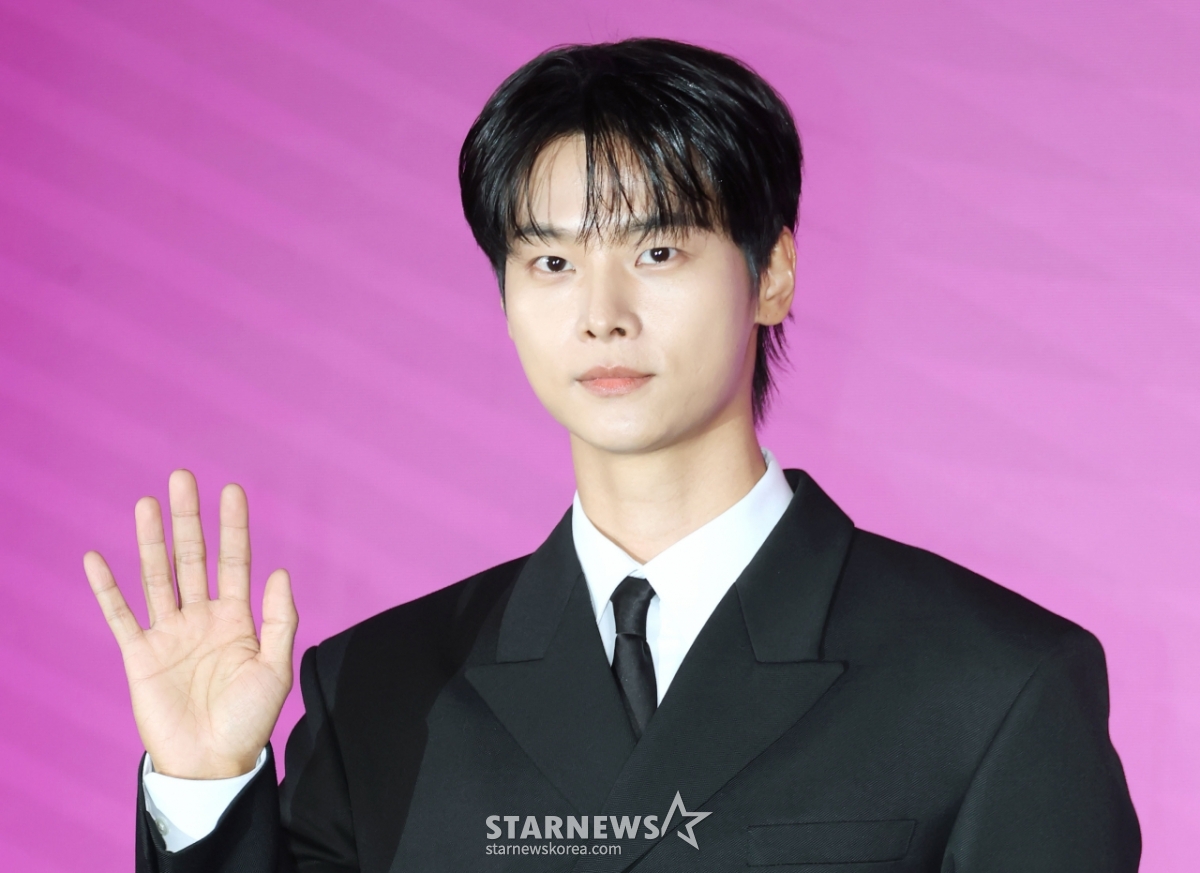 Actor Cha Hak-yeon poses at the production presentation of the Coupang Play series "The Absolute Value of Romance" held at The St. in Guro-gu, Seoul on the morning of the 14th. /2026.04.14