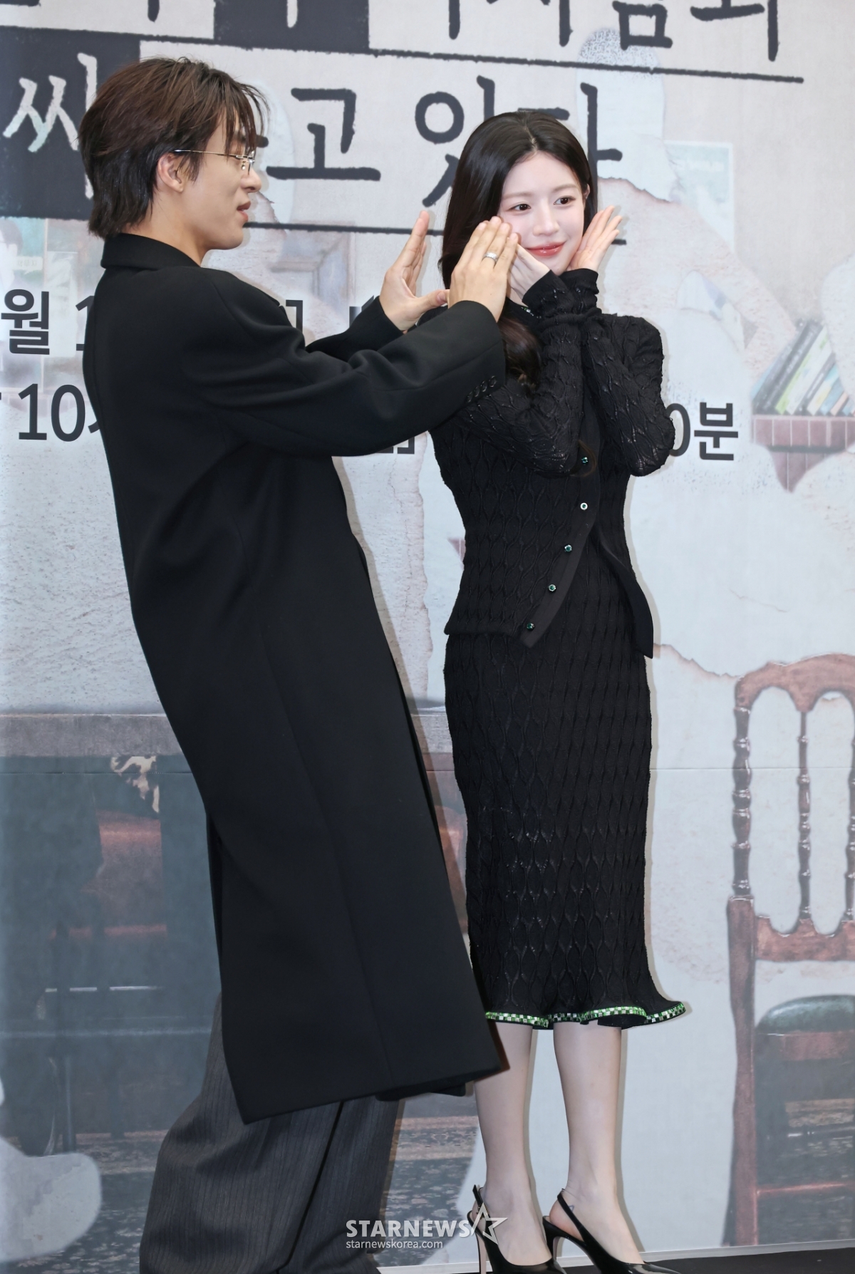 Actors Koo Kyo-hwan and Ko Yoon-jung posed at the production presentation for the JTBC Saturday-Sunday drama 'Everyone Is Fighting Their Own Worthlessness', held this afternoon at the Stanford Hotel in Sangam-dong, Mapo-gu, Seoul, on the 17th.