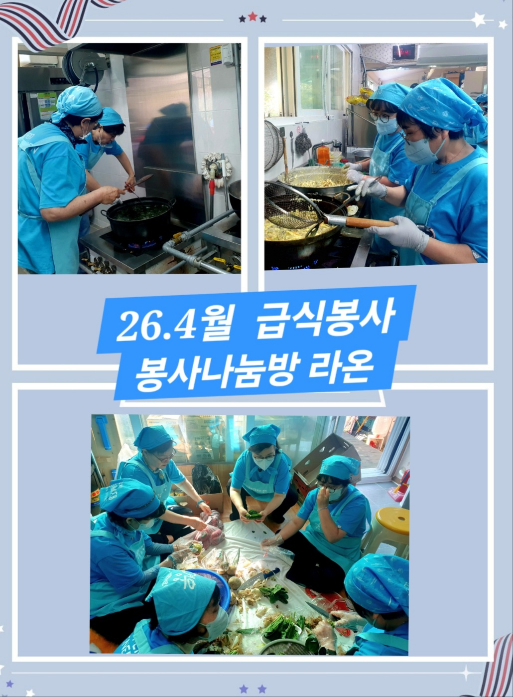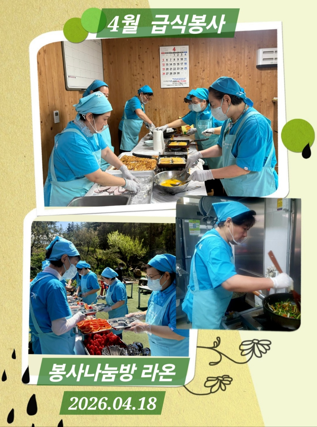 This volunteer activity was held in preparation for the upcoming "Day of Persons with Disabilities" on April 20. Members of "Raon" set out early in the morning to gift the residents a special day. On this day, the members served home-cooked boneless chicken stew, seaweed soup, mini pork cutlets, japchae, vegetable tempura, ham pancakes, stir-fried asparagus, and fruit salad. They also provided snacks such as candies and cookies, milk and beverages, along with bananas, strawberries, apples, oranges, honey rice cakes, and 10 kilograms of Hanwoo beef brisket.