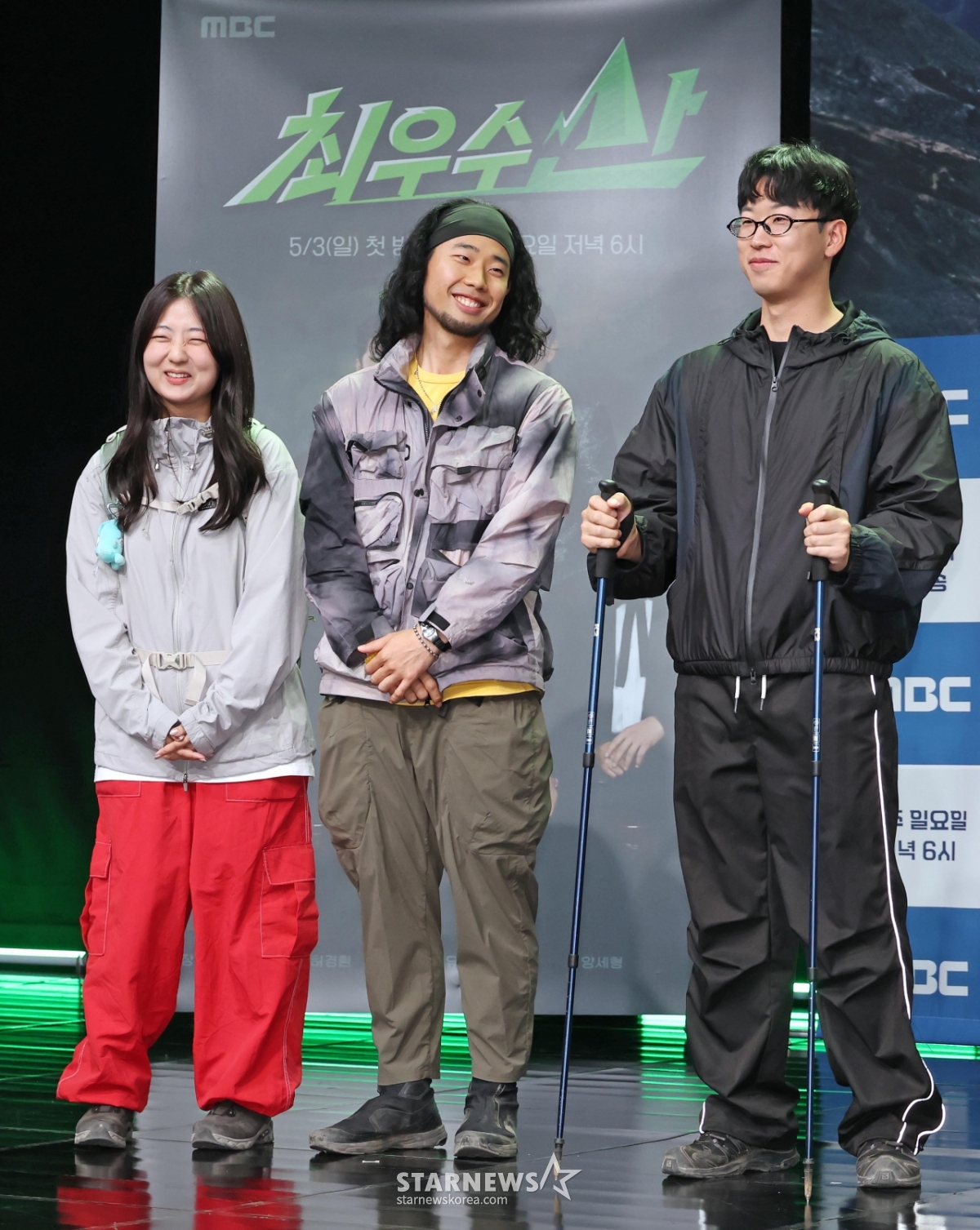 Seo Ye-na, Kim Ik-hwan, and Kim Myeong-yeop PD attended the launch event for the new variety program 'Choi Su-san' held at 2 p.m. on the 28th at MBC in Sangam-dong, Mapo-gu, Seoul, posing for photos. /2026.04.28