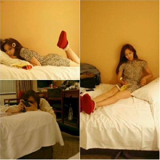 On February 18, the leggy member of T-ara tweeted several pictures with the comment, “Taking a rest in a bed after completing today’s schedule. Saying I look like a leopard in Mount Kilimanjaro today, Eunjung took a picture of me passionately. We had a sweet time as if we were on the honeymoon. ^^”