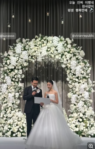 KUSH and VVN held their wedding ceremony on the 11th at a private venue in Seoul. The two first met through mutual acquaintances and, after nine years of public dating since 2016, finally got married.