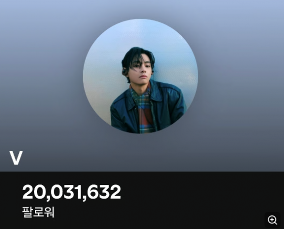 As of October 5, V reached 20,001,176 followers, marking the first time a K-pop solo artist has crossed the 20 million mark, and his follower count currently stands at 20,031,632. This is the highest record for any K-pop soloist, and across all K-pop soloists and groups, he ranks 4th overall. V’s Spotify profile features 16 tracks, including songs from his first solo album “Layover”, drama OSTs, and self-composed tracks, which have accumulated 5.18 billion streams in total.