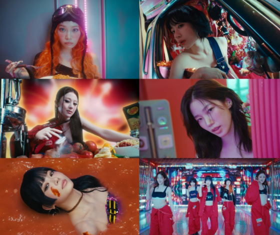 In the video, LE SSERAFIM is seen sharing spaghetti with an ecstatic crowd, symbolizing the joy and satisfaction they bring to their fans through music. The unique direction and bold visuals heighten the group’s artistic identity.