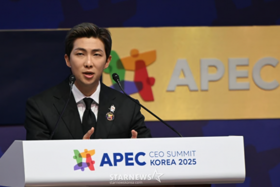 BTS leader RM delivered a keynote speech at the APEC CEO Summit in Gyeongju.