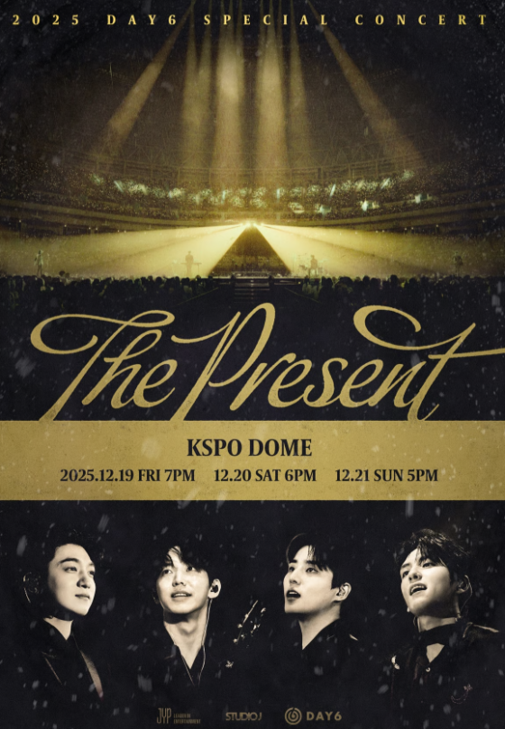 DAY6 will hold their exclusive concert, 2025 DAY6 Special Concert ‘The Present’, from December 19 to 21 at KSPO DOME in Olympic Park, Songpa-gu, Seoul. Ticket reservations will be available through YES24, with fan club pre-sale for My Day (the fandom) 5th-generation members taking place on the 17th from 8 p.m. to 11:59 p.m., followed by general reservations on the 19th at 8 p.m. Further details regarding the concert and ticketing can be found on the group’s official social media channels.