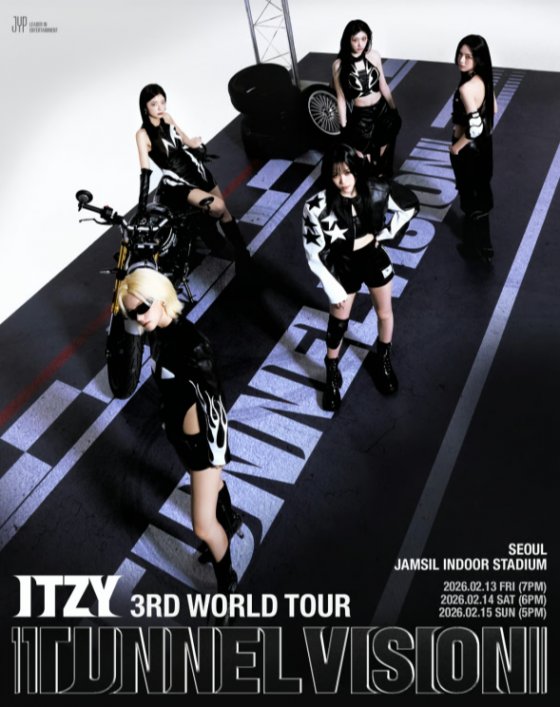ITZY will kick off its new world tour, “ITZY 3RD WORLD TOUR <TUNNEL VISION>,” with a three-day solo concert from February 13 to 15, 2026, at Jamsil Indoor Stadium in Songpa-gu, Seoul. Tickets for the concerts will be available through YES24. Fan club presales for MIDZY (the group’s official fandom) 4th-generation members will take place from 8:00 p.m. to 11:59 p.m. on the 5th, followed by general ticket sales beginning at 8:00 p.m. on the 7th. Further details regarding the concerts and ticketing can be found on ITZY’s official social media channels.