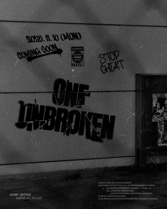 图像中,一面建筑外墙以涂鸦形式呈现了专辑发行日期、专辑名称“ONF: UNBROKEN”,并写有“DO NOT ENTER”,“STOP CHEAT”等字样,引发广泛关注。尽管文字表面破损、布满划痕,但其中传递出的强烈情绪与张力,已让粉丝对ONF此次专辑所要传达的核心信息充满期待。