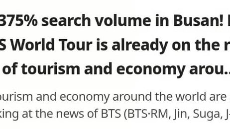 釜山の検索量2375%急増! BTSワールドツアー、早くも全世界の観光·経済が揺れる