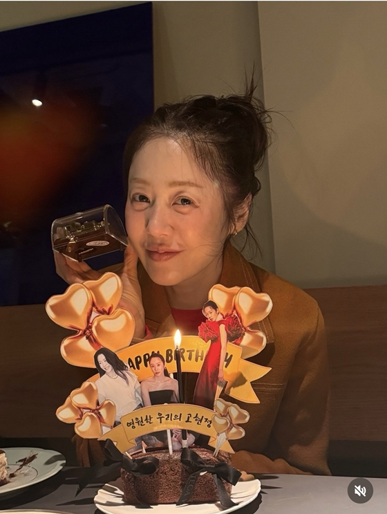 公開された写真の中のコ·ヒョンジョンは、自分の顔が入ったトッパーが刺さったケーキを持って満面の笑みを浮かべている。 特に、化粧気のない地味な顔と楽な身なりにも関わらず、55歳という年齢が信じられない童顔の容貌を誇った。