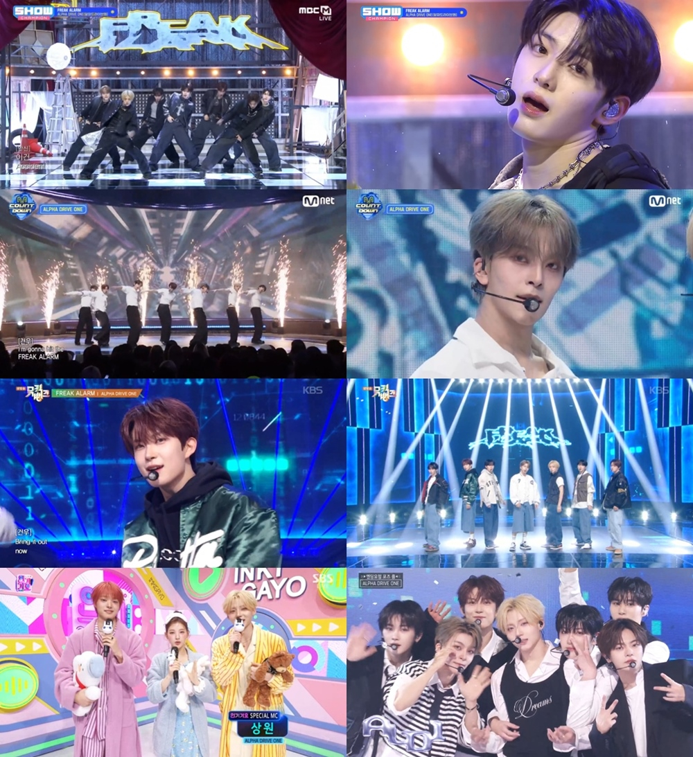 アルファドライブワンはMBC M、MBC every1「ショー!チャンピオン」、Mnet「Mカウントダウン」、KBS 2TV「ミュージックバンク」、MBC「ショー!」 「音楽中心」、SBS「人気歌謡」まで多様な音楽番組の舞台で強烈な印象を残した。 舞台を重ねるごとにさらに堅固になったチームワークとパワフルなパフォーマンスを披露し、ビジュアルと実力まで兼ね備えたチームであることを改めて立証した。