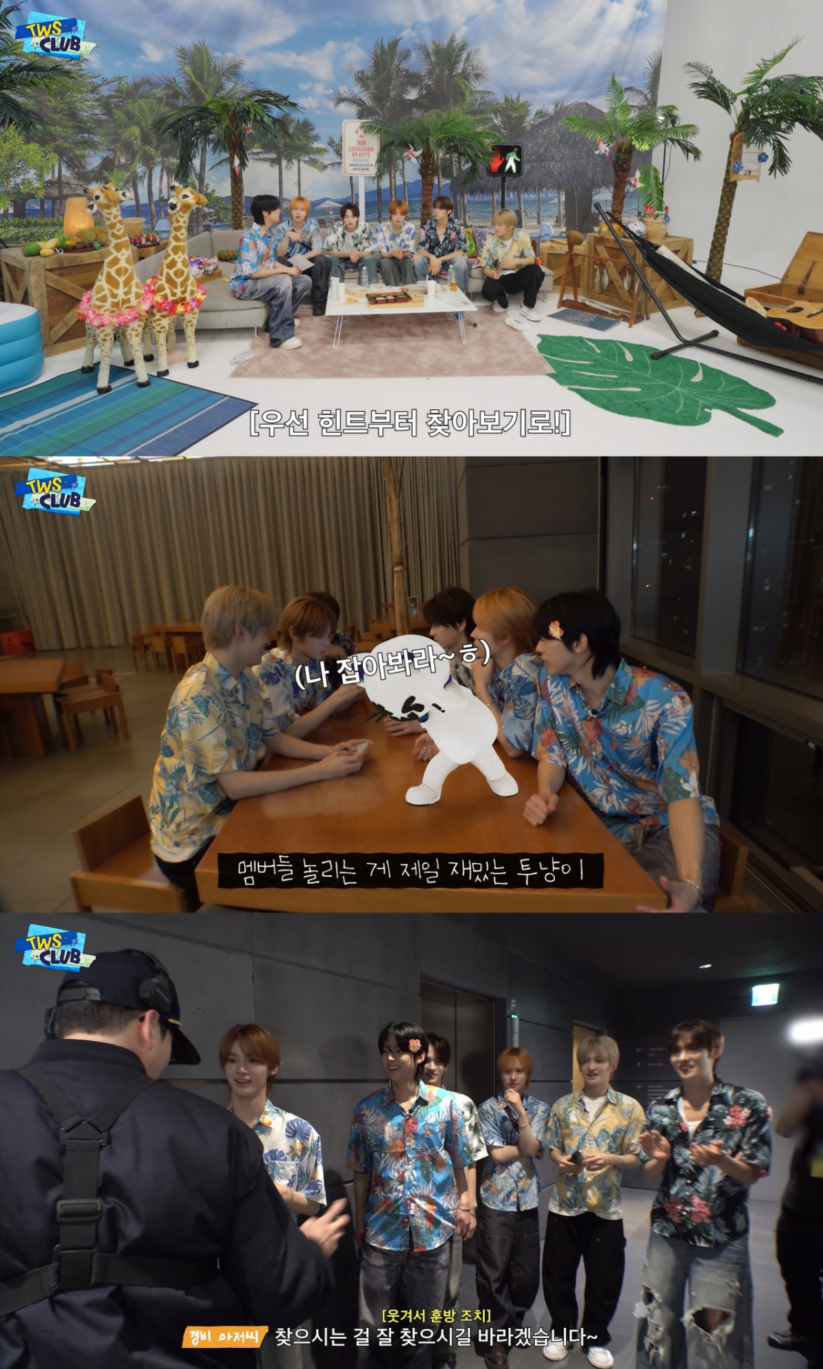 自分たちを捕まえに来た「警備おじさん」を避けるために所属事務所職員のふりをするTWSの姿も見どころだった。 コンピューター作業中のシンユから防音ブースで通話中のギョンミンまで、ディテールな名演技が些細な面白さを加えた。