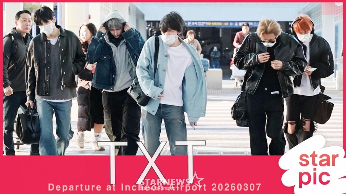 *このコンテンツはAIによって翻訳されました。グループTOMORROW X TOGETHER(TXT)のスビン、ヨンジュン、ボムギュ、テヒョン、ヒュニンカイが海外日程のため、7日午後、仁川国際空港を通じて出国している。 2026.03.07© STARNEWS. 無断転載・再配布禁止*このコンテンツはAIによって翻訳されました。