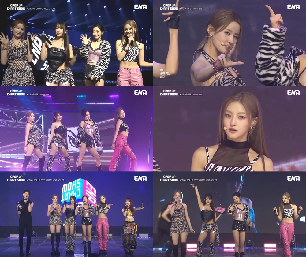 KISS OF LIFE(キス·オブ·ライフ)は4月28日に放送されたENA「K-POPUPチャートショー」で新曲「Who is she」で1位の「K-POPUPベストミュージック」を受賞した。 これで今回の活動で音楽放送2冠王を達成した。