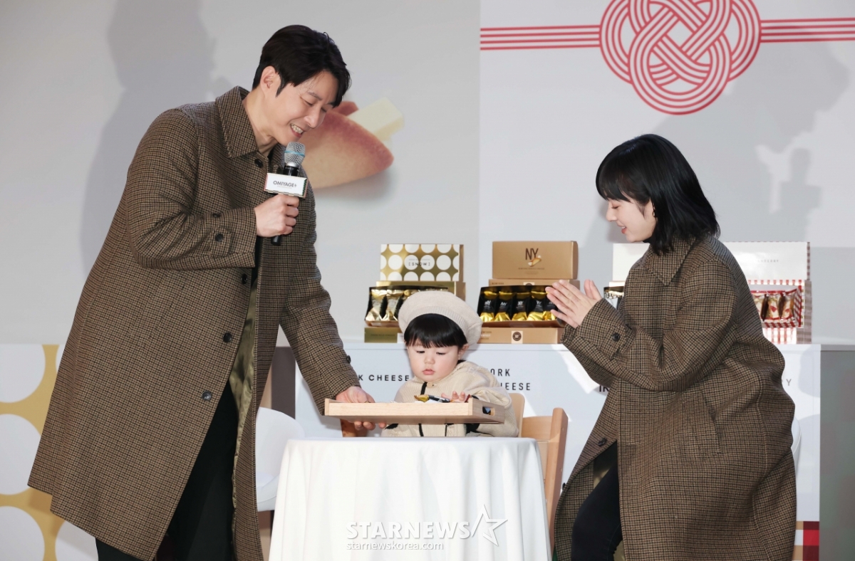 俳優のシム·ヒョンタク、妻の平井沙耶、息子のシム·ハルが29日午前、ソウル汝矣島のIFCモールで行われた「OMIYAGA+日本プレミアム大宮司デザートポップアップイベント」に参加し、ポーズを取っている。 /2026.01.29