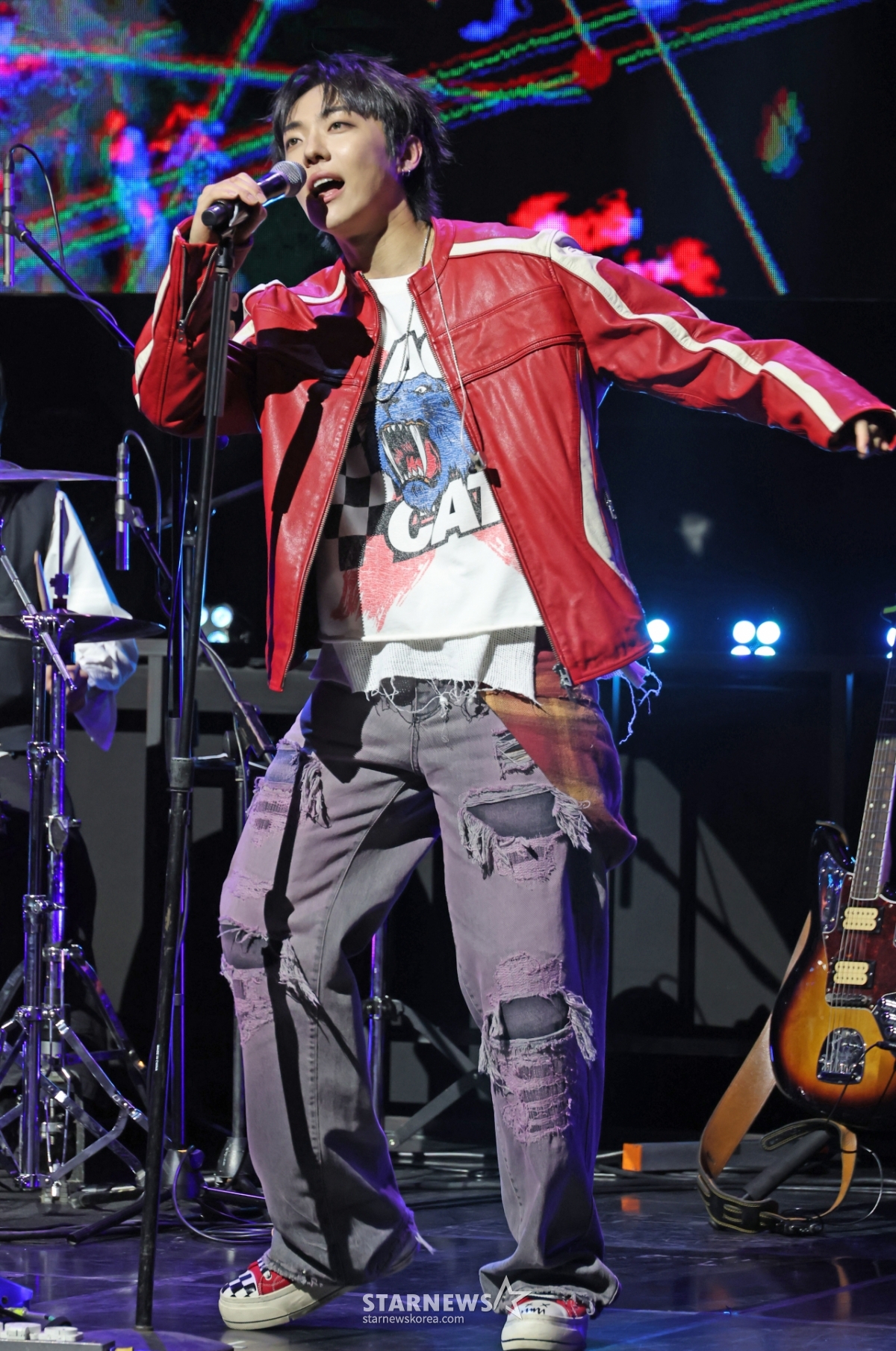 バンドドラゴンポニー(DRAGON PONY)ボーカルのアン·テギュが10日午後、ソウル麻浦区イエス24ワンダーロックホールで行われた3回目のEP「RUN RUN RUN」(ランラン)発売記念ショーケースでタイトル曲を披露している。