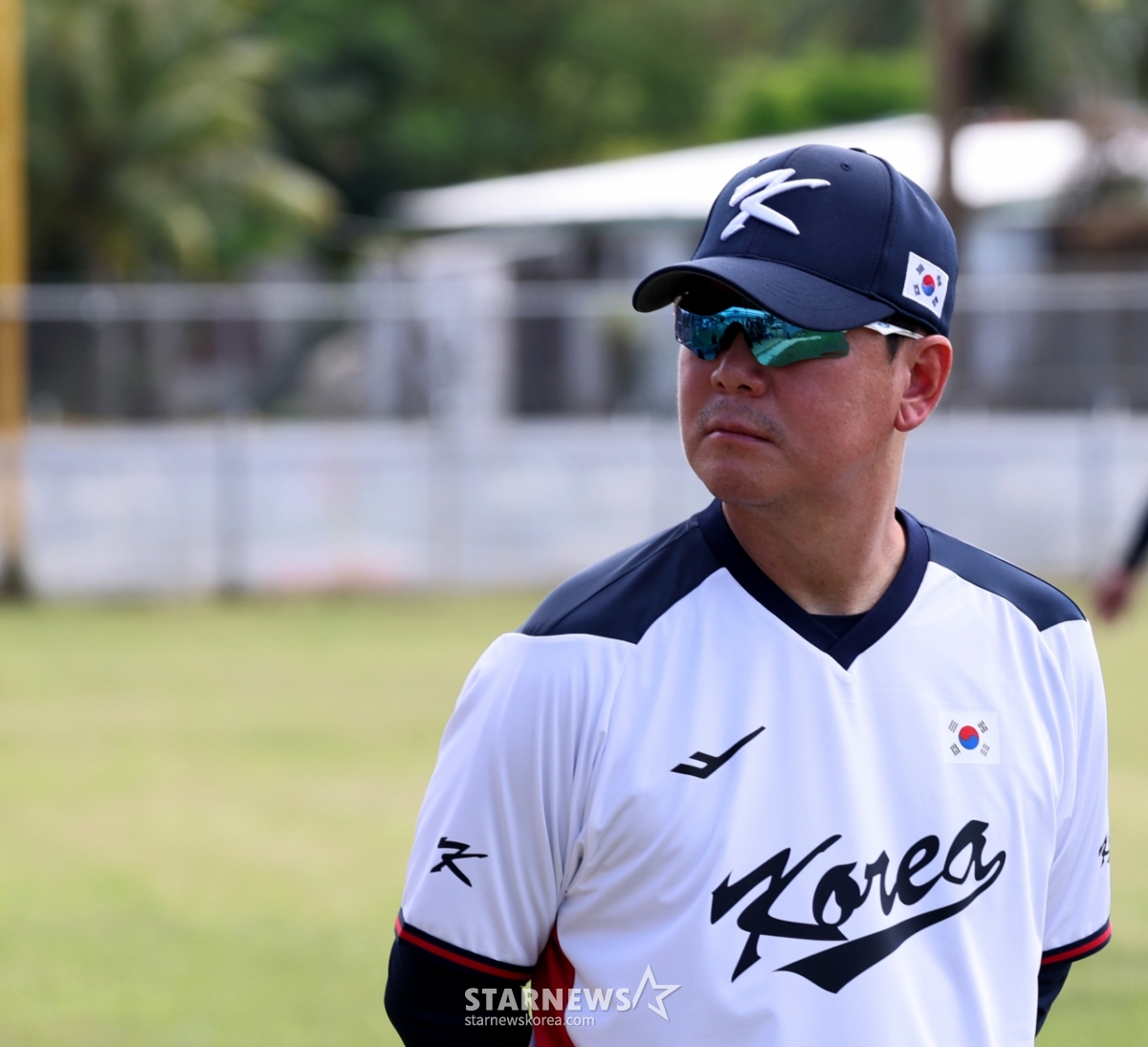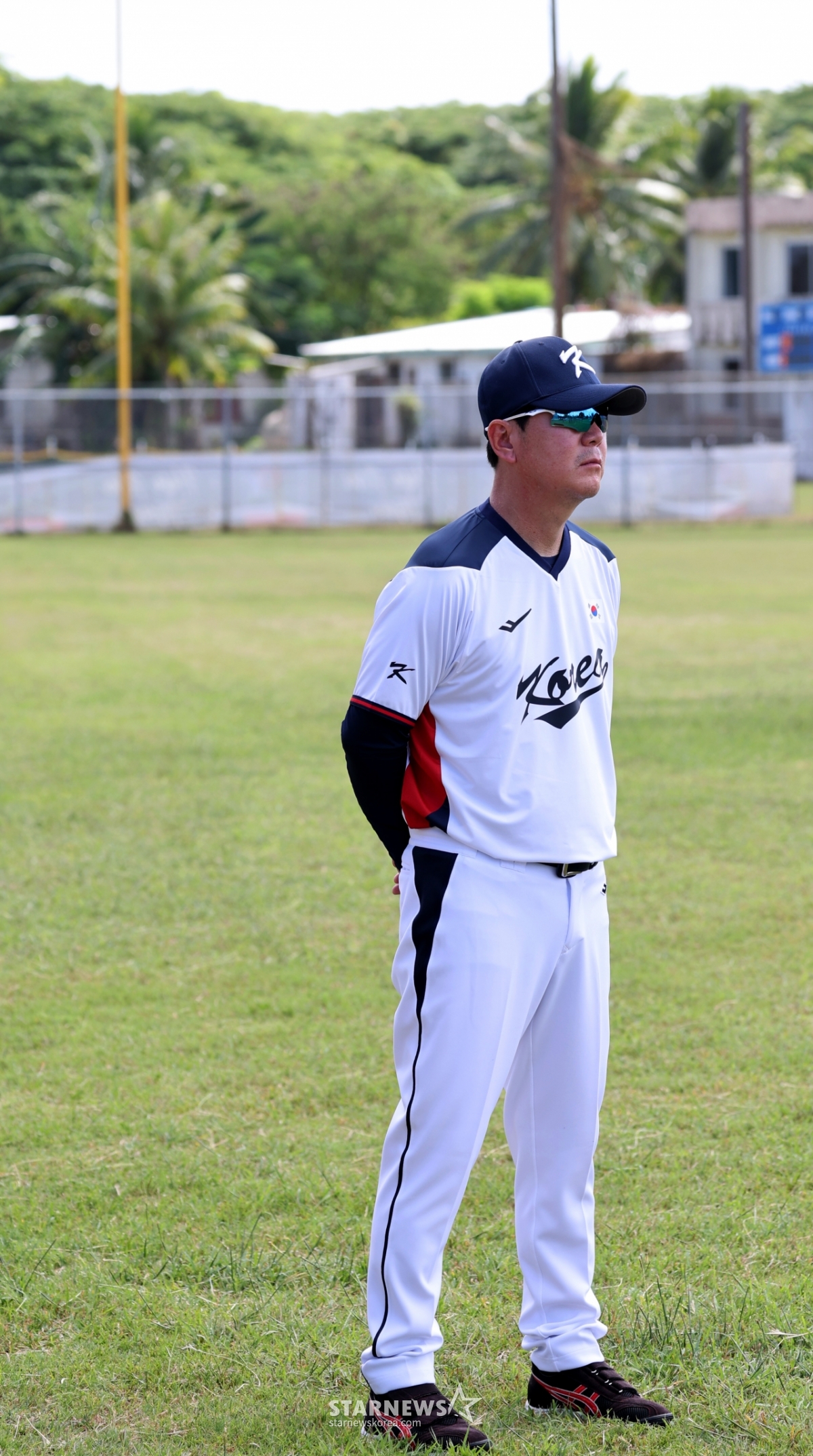 *このコンテンツはAIによって翻訳されました。野球代表チームの柳智賢(リュ·ジヒョン)監督が11日、サイパン·オレアイ·スポーツ·コンプレックスで行われる転地トレーニングの2日目に打撃練習をする選手たちに集中している。 2026.01.11.© STARNEWS. 無断転載・再配布禁止*このコンテンツはAIによって翻訳されました。
