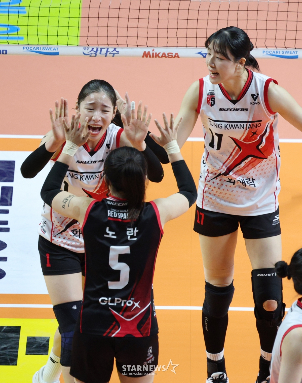 *このコンテンツはAIによって翻訳されました。2025-2026V-リーグ女子部GSカルテックス大会の正官庄(ジョングァンジャン)競技が20日、ソウル奨忠(チャンチュン)体育館で行われた。正官庄インクシーが決定的な得点をした後、歓呼している。© STARNEWS. 無断転載・再配布禁止*このコンテンツはAIによって翻訳されました。