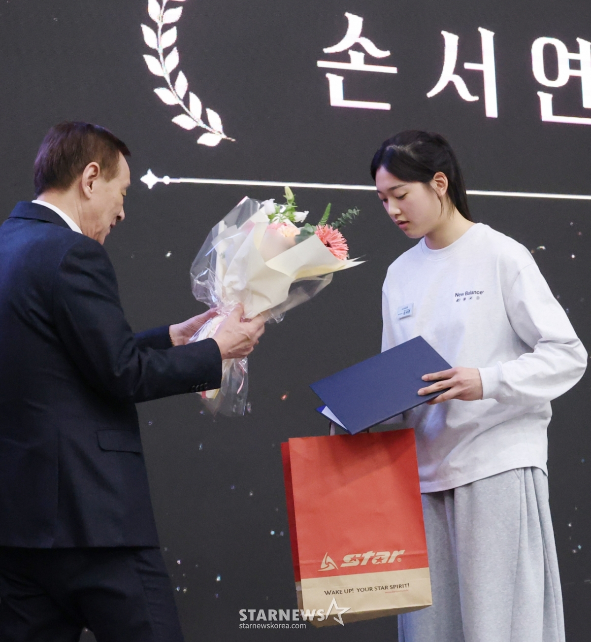 *このコンテンツはAIによって翻訳されました。「2026バレーボール人の夜」が28日、ソウル松坡区(ソンパグ)のオリンピックパークテルオリンピアホールで開かれた。韓国女子U16代表チームの主将、ソン·ソヨンが最優秀選手賞を受賞している。© STARNEWS. 無断転載・再配布禁止*このコンテンツはAIによって翻訳されました。