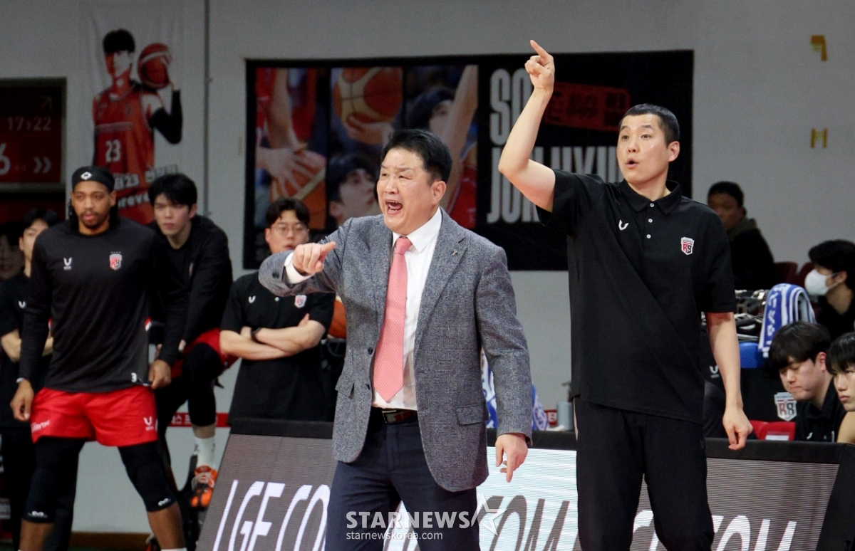 チョン·グァンジャン、ユ·ドフン監督が29日、安養体育館で開かれた2025-2026LG電子プロバスケットボールチョン·グァンジャンと三星の試合4ククォーターを指揮している。 2026.01.29.