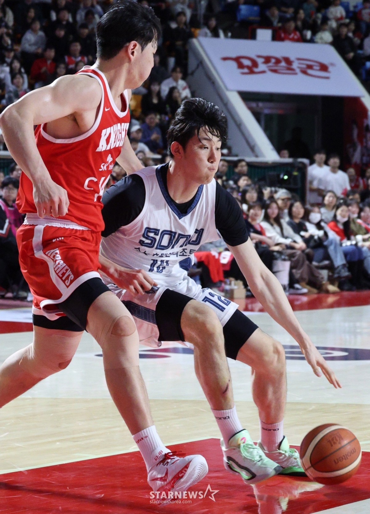 *このコンテンツはAIによって翻訳されました。2025-2026KBLプロバスケットボールソウルSK対大邱(テグ)韓国ガス公社の試合が24日、ソウル蚕室(チャムシル)学生体育館で行われた。その朴ジフンがSKのチェ·ブギョンを抜いてゴール下シュートを試みている。© STARNEWS. 無断転載・再配布禁止*このコンテンツはAIによって翻訳されました。