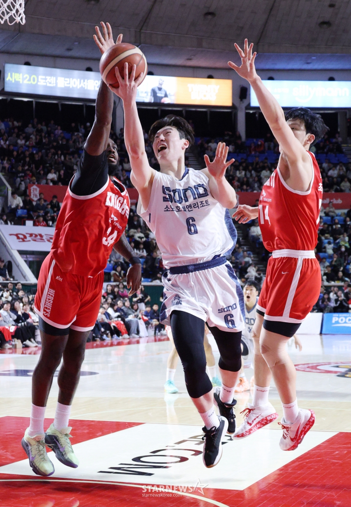 *このコンテンツはAIによって翻訳されました。2025-2026KBLプロバスケットボールソウルSK対大邱(テグ)韓国ガス公社の試合が24日、ソウル蚕室(チャムシル)学生体育館で行われた。ソノ·イヒョンがSKウォニーを抜いてゴール下シュートを試みている。© STARNEWS. 無断転載・再配布禁止*このコンテンツはAIによって翻訳されました。