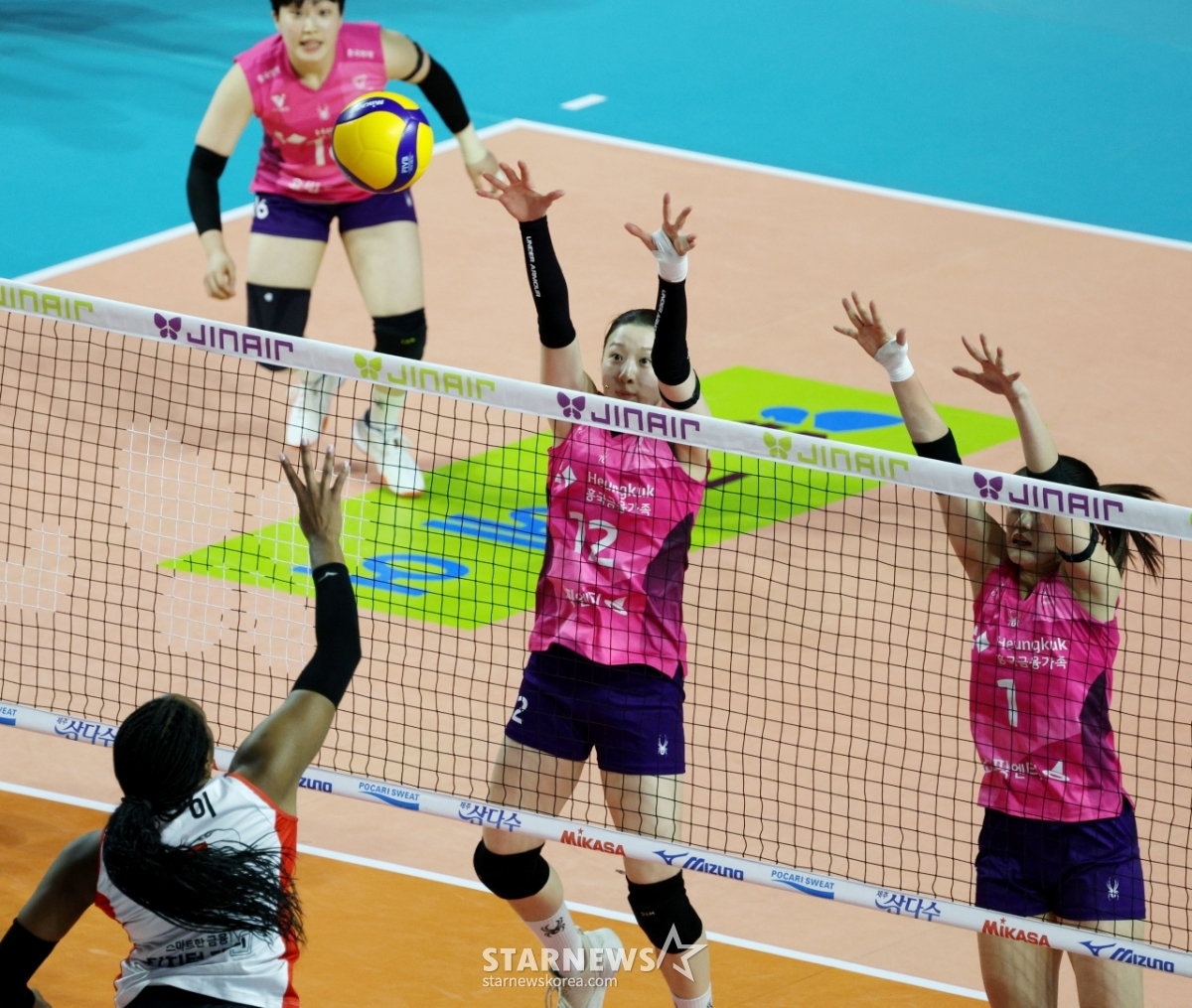 *このコンテンツはAIによって翻訳されました。ペッパージョイが1日、三山ワールド体育館で開かれた2025-2026ジンで、Vリーグ興国生命とペッパー貯蓄銀行の試合で興国二重ブロッキングに阻まれ、連打を試みている。 2026.02.01.© STARNEWS. 無断転載・再配布禁止*このコンテンツはAIによって翻訳されました。