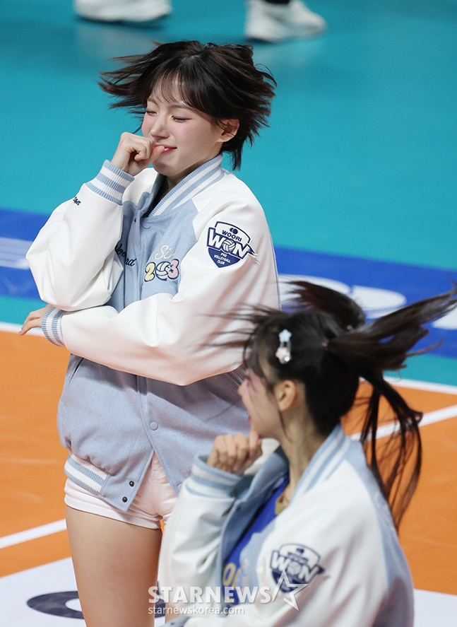 *このコンテンツはAIによって翻訳されました。2025-2026V-リーグ男子部のウリカード対韓国電力の試合が2日、ソウル奨忠(チャンチュン)体育館で行われた。ウリカードのチアリーダー、ハ·ジウォンがさわやかな応援をしている。© STARNEWS. 無断転載・再配布禁止*このコンテンツはAIによって翻訳されました。
