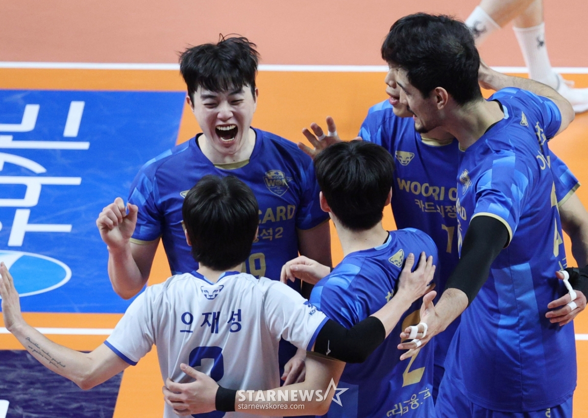 ハファエル·アラウジョが19点、アリが14点、キム·ジハンが11点で、ウリィカード三角編隊が合わせて44点を爆発させ、シャットアウト勝利を導いた。