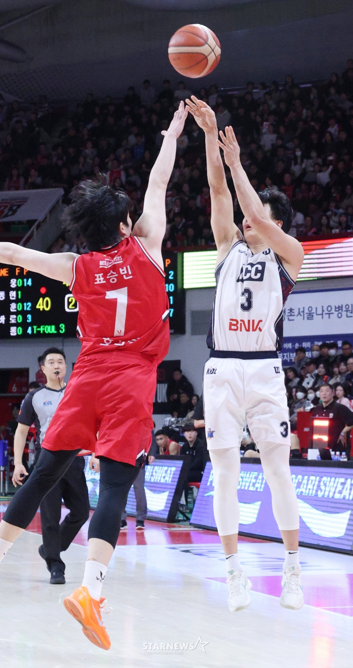 *このコンテンツはAIによって翻訳されました。2025-2026LG電子プロバスケットボール安養正官庄対釜山KCCの試合が7日、京畿道安養正官庄アリーナで行われた。KCCのホ·ウンがチョン館長のピョ·スンビンを抜いて3点シュートをしている..© STARNEWS. 無断転載・再配布禁止*このコンテンツはAIによって翻訳されました。