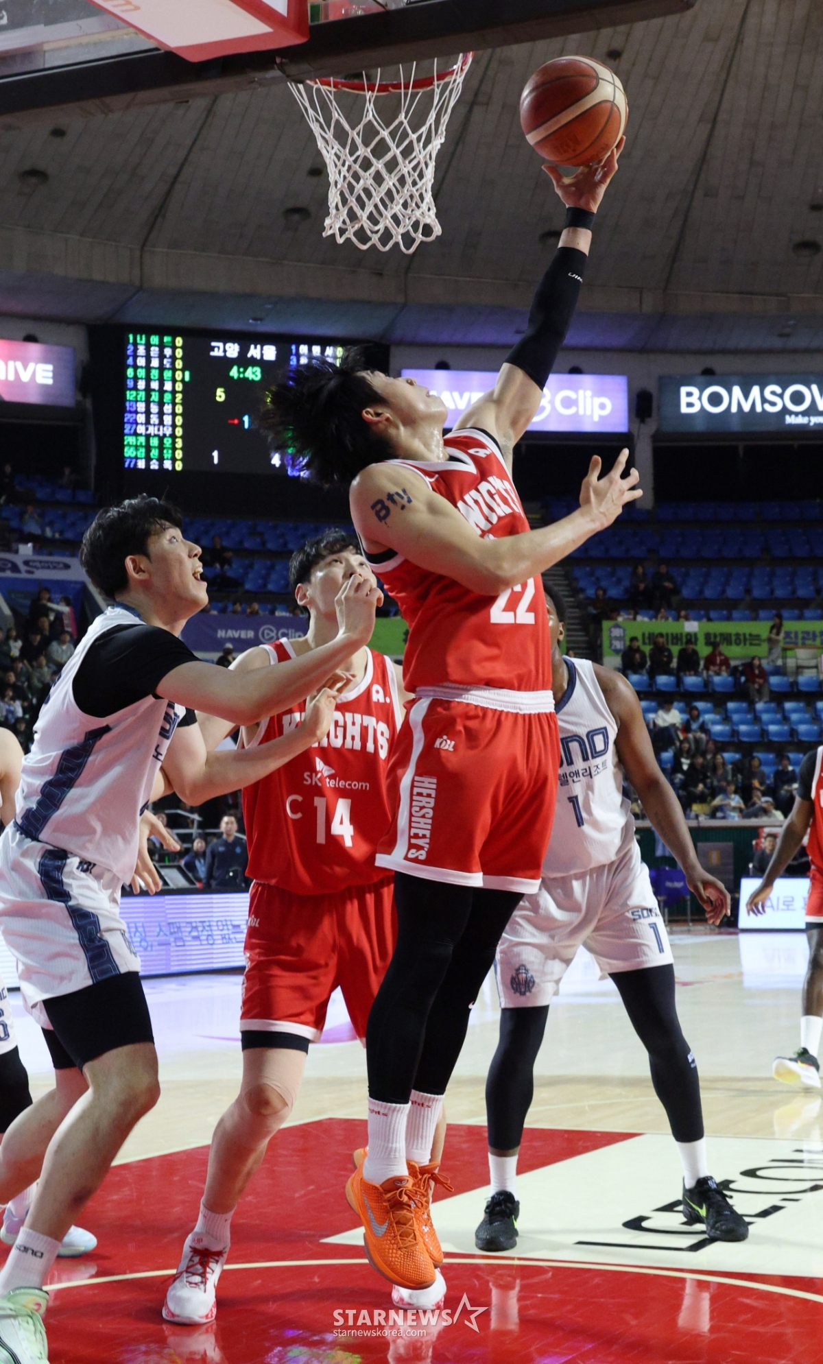 *このコンテンツはAIによって翻訳されました。2025-2026KBLプロバスケットボールソウルSK対高陽(コヤン)ソノの試合が11日、ソウル蚕室(チャムシル)学生体育館で行われた。SKのオ·ジェヒョンがソノ、カン·ジフンを抜いてゴール下シュートを試みている。© STARNEWS. 無断転載・再配布禁止*このコンテンツはAIによって翻訳されました。